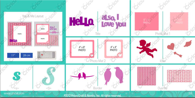 If you have a Cricut, you really must feast your eyes on this brand new Close to My Heart cartridge! It has a great font that will work wonderfully for chalk board style print/cutting, pair it up with some of the ready to cut phrases and you will have so many unique subway type signs and title bars to add just the right touch for your pages. Many of the cuts are planned sizes for pages but you can resize them however you want for cards and other paper crafts. There are page overlays, and double layouts, and 10 themed mini album pages. There are also really neat photo mats and designs for pages for babies through adults and for EVERY holiday!